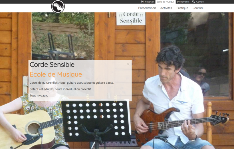 Site vitrine de l’école de musique Corde Sensible, spécialisée dans les cours de guitare (électrique, acoustique, basse) pour tous niveaux.
