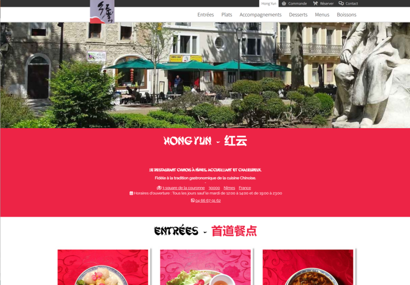 Site / Menu du restaurant Hong Yun à Nîmes, spécialisé en cuisine chinoise traditionnelle.
